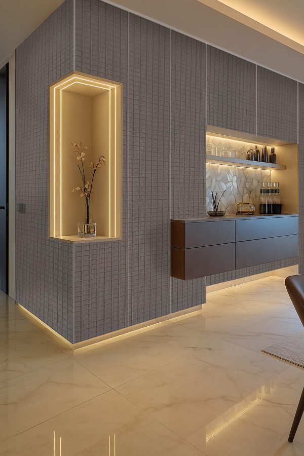 Hybrid Veneer Surface: Unique modern grain pattern that elevates interior aesthetics.